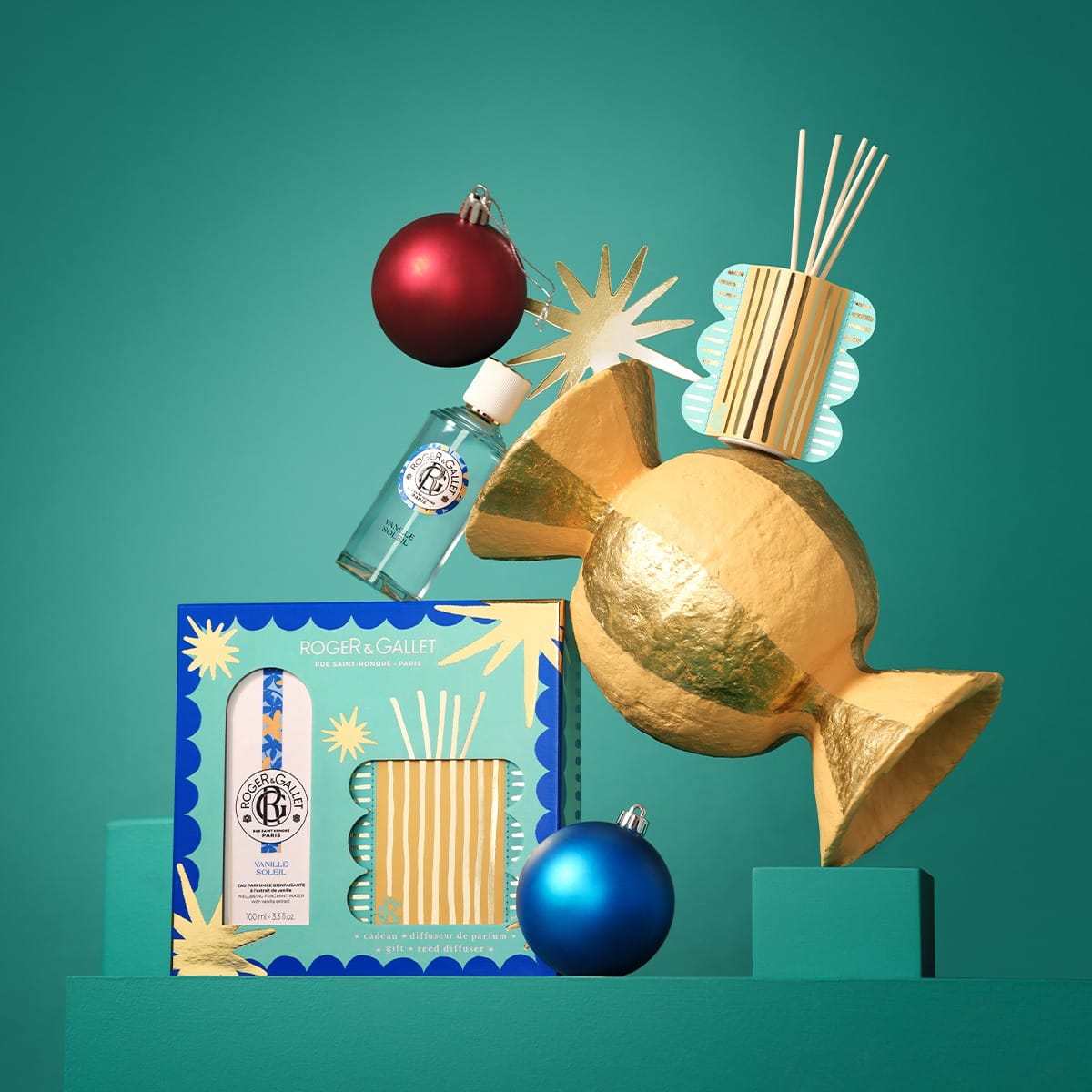 For the festive season, Roger&Gallet invites you to its Great Christmas Bazaar, a fragrant world of a thousand and one colours imagined by artist and sculptor Eclette. Sparkle with the Vanille Soleil gift set, a fragrance featuring Madagascan vanilla and a unique blend of salty notes and sunny white flowers, available as a perfume and room diffuser, the finishing touch to make your home feel even more ‘feel good’.